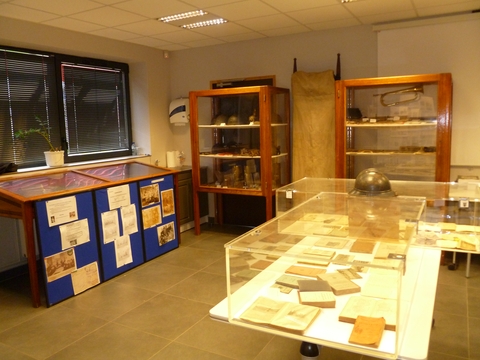 Les vitrines exposant de nombreux documents et objets de l'époque 14-18.