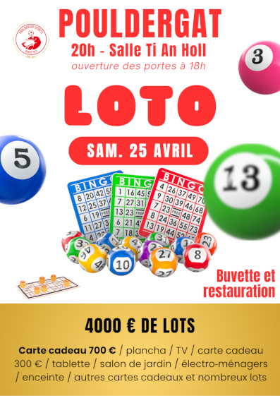 Pouldergat-Sports organise son loto annuel le samedi 25 avril, dans la salle Ti An Holl à 20h.