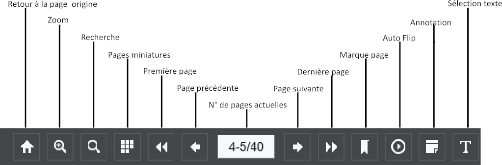 Mode d'emploi de la barre des symboles affichée en bas du livret